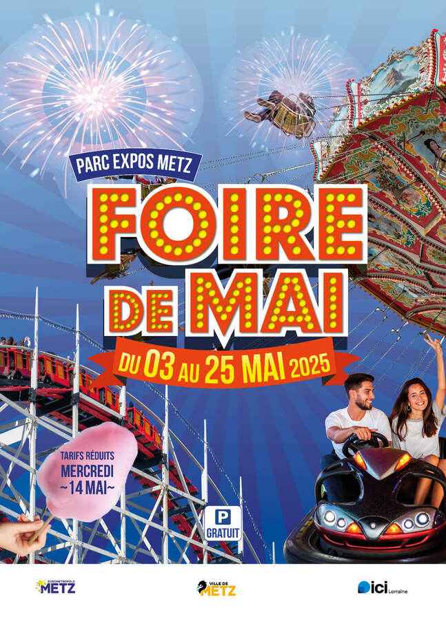 La Ville de Metz vous présente le programme du grand rendez-vous annuel et populaire : la Foire de Mai. Inscrite depuis des décennies parmi les plus imposantes fêtes foraines du nord-est, cette année encore, elle va vous enchanter avec des nouveautés !