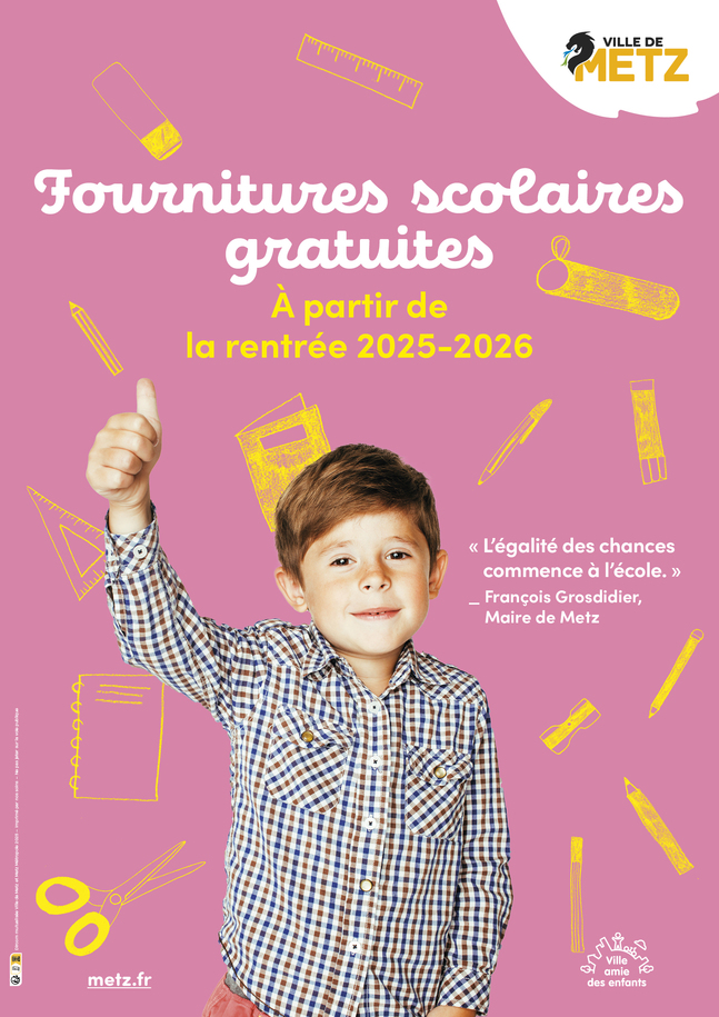 À partir de la rentrée 2025-2026, les fournitures scolaires seront prises en charge par la Ville de Metz. La distribution des fournitures se fera au sein de chaque classe en septembre prochain.