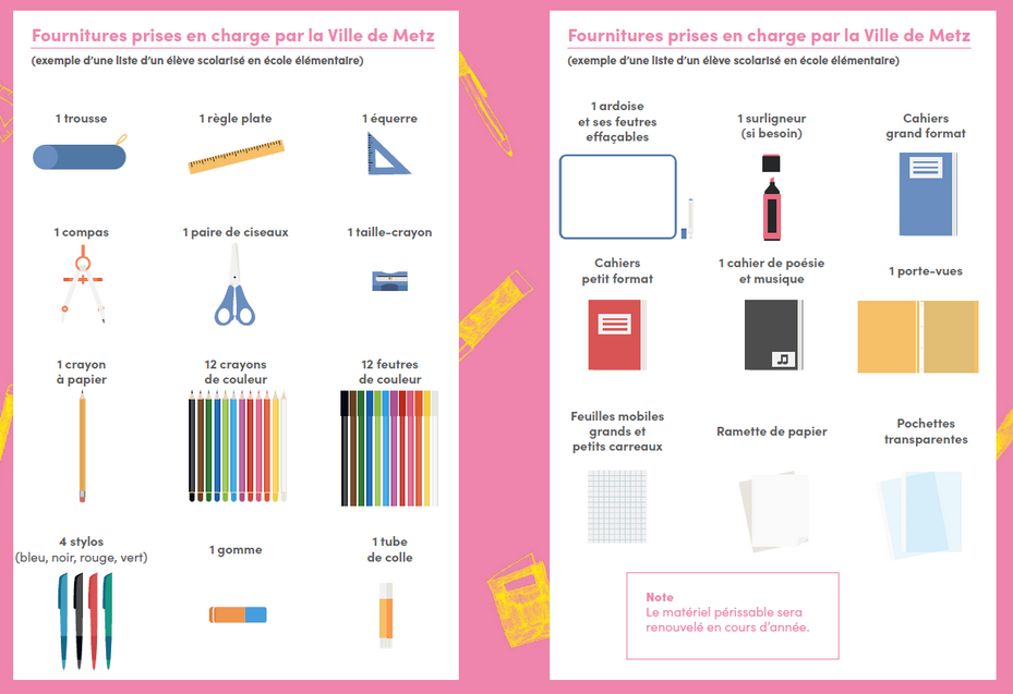 Fournitures prises en charge par la Ville de Metz