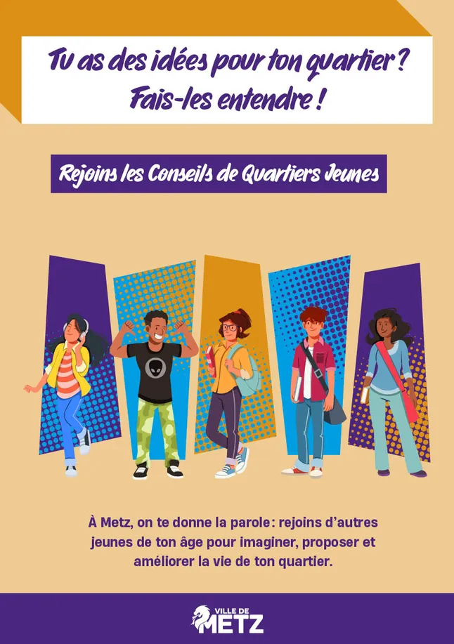 La Ville de Metz crée les Conseils de Quartiers Jeunes pour permettre aux collégiens et collégiennes de s’impliquer dans la vie de leur quartier et de faire entendre leurs idées. Si tu es en 6e, 5e, 4e ou 3e, c’est le moment de t’engager !
