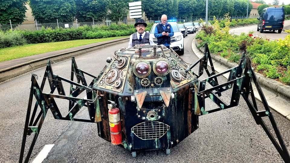 L’Araignée est née dans le cerveau torturé du prolifique président de l’association La Machine à Lulu. La réalisation de ce prototype atypique a démarré en octobre 2024. Des membres de l’association ont participé à sa mise en oeuvre. Ce projet a été financé par le président à titre personnel. Le plasticien Stéphane Favier s’est occupé de toute la partie décoration de l’engin. Sa première sortie du 8 juin 2025 a permis de tester et de modifier quelques erreurs mécaniques et électriques constatées dans les entrailles du monstre. Le Graoully s’ennuyait tout seul, il va avoir de la compagnie !