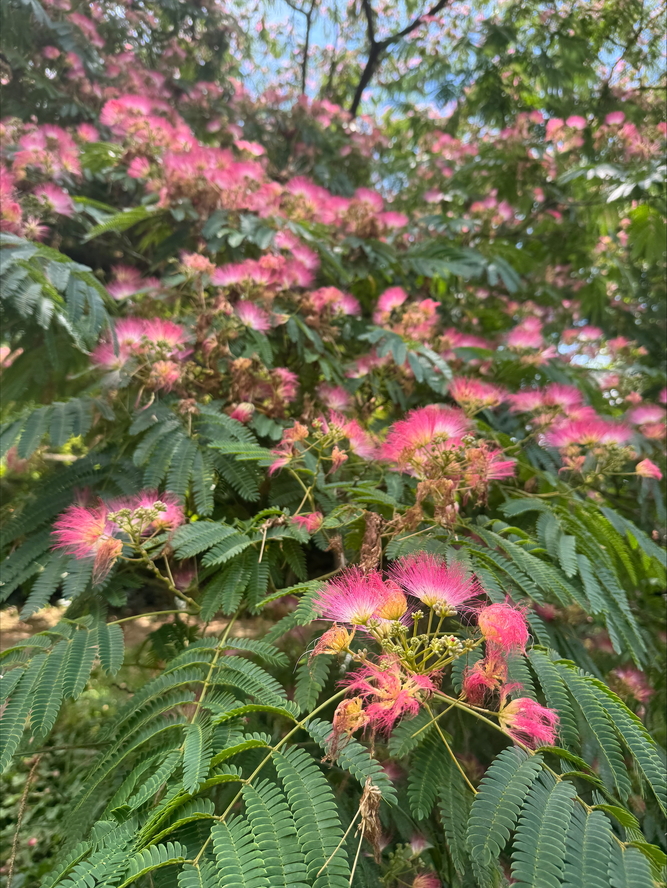 Outre ses remarquables inflorescences duveteuses et soyeuses, les fleurs d’Albizia julibrissin sont riches en nectar, très prisées des abeilles, papillons et autres insectes pollinisateurs. Il est également apprécié comme arbre d’ombrage léger dans les jardins.