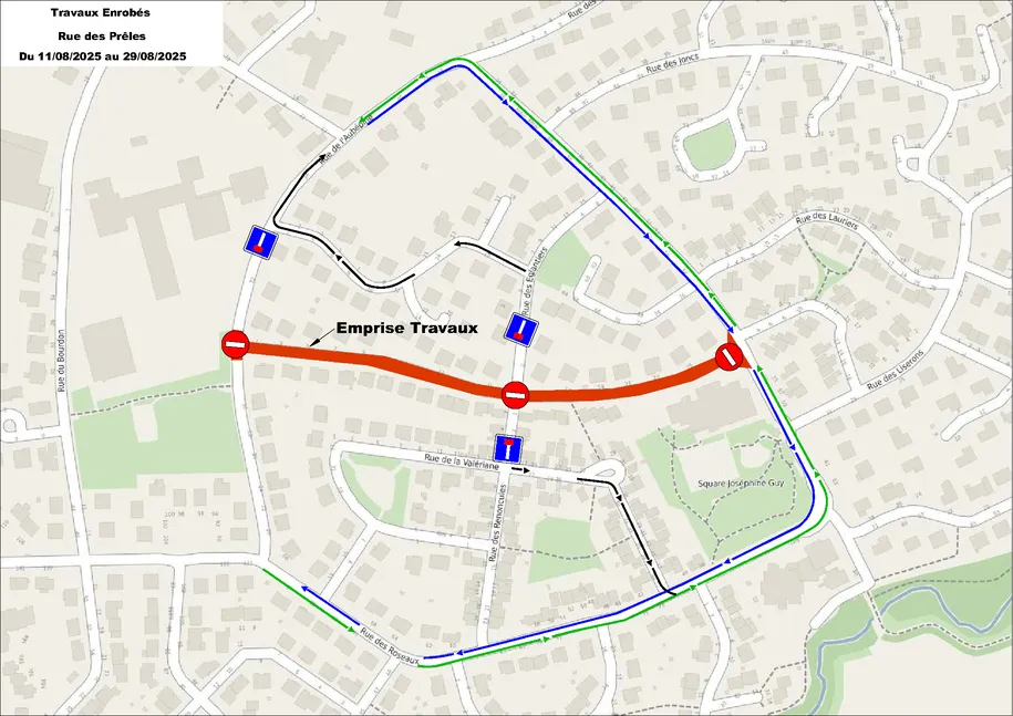 Du 11 au 29 août 2025, des travaux de réfection de la chaussée se déroulent rue des Prêles, entraînant des perturbations des conditions habituelles de circulation.