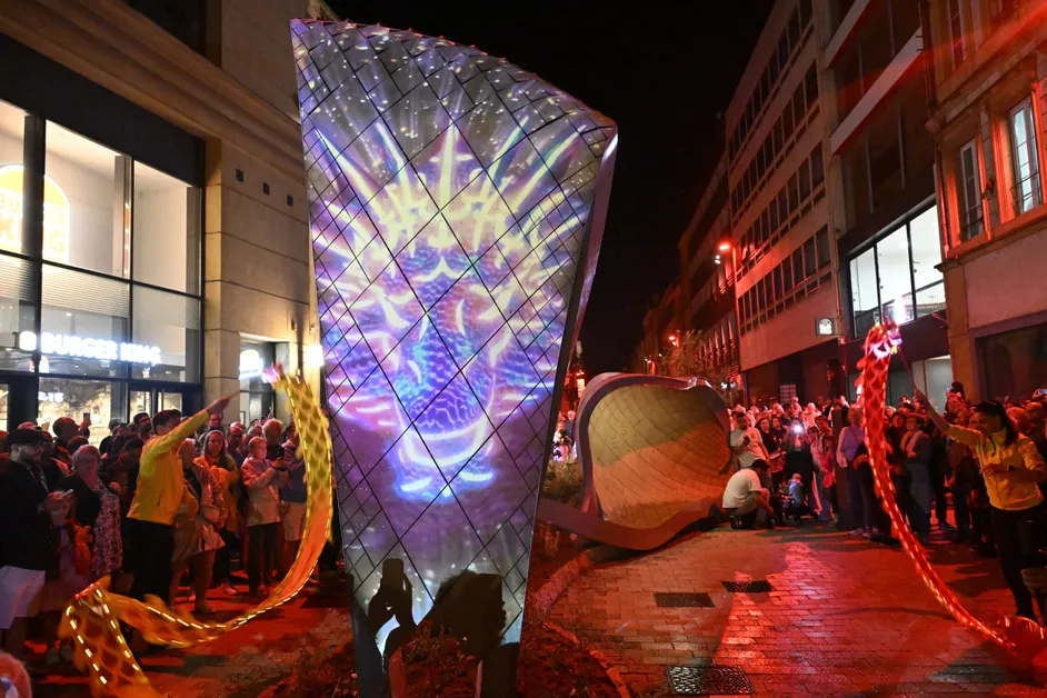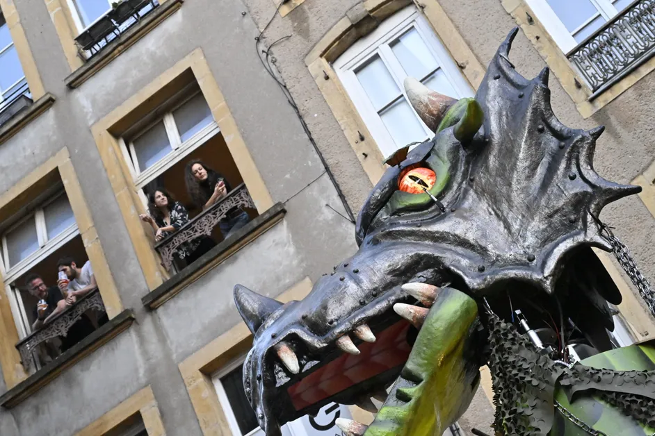 - Mapping vidéo projeté sur la tête du Graoully à l'entrée de la rue Serpenoise