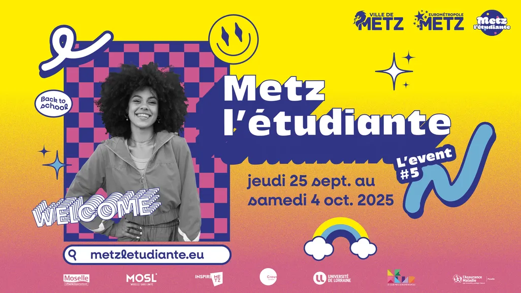 Pour célébrer cette nouvelle rentrée universitaire, Metz l'étudiante et ses partenaires organisent une semaine de festivités et d'activités gratuites ou à tarifs préférentiels, du 25 septembre au 4 octobre, dans le cadre de Metz l'étudiante l'event #5.