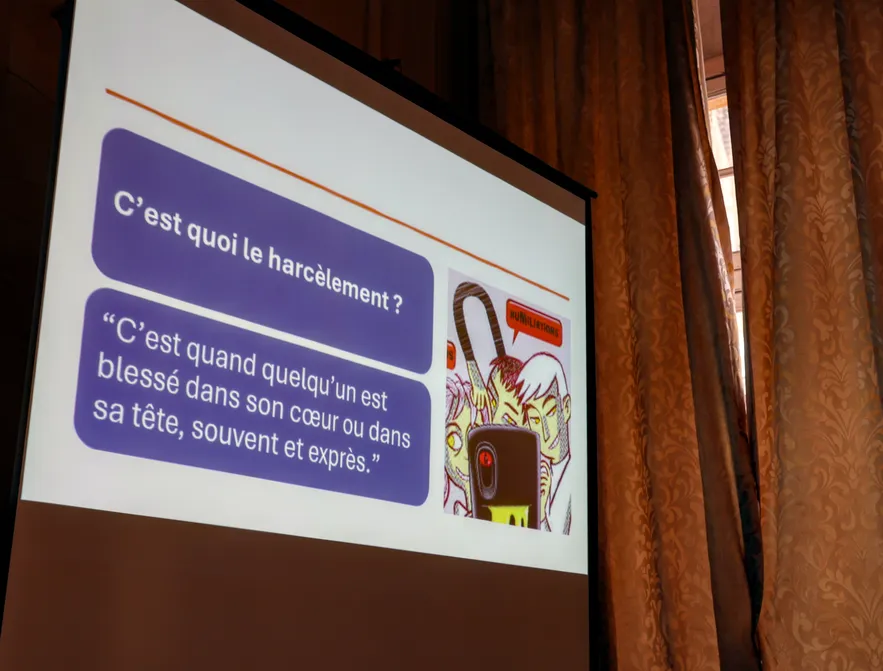 Dans la continuité de ce projet, ils sont également à l'initiative de la conférence de sensibilisation qui s'est tenue aujourd'hui dans les salons de l'Hôtel de ville. Organisée en collaboration avec l’AAESEMO (Association d’Aide Educative en Milieu Ouvert), engagée depuis de nombreuses années dans l’accompagnement des jeunes en difficulté et la promotion du vivre-ensemble, cette conférence visait à informer, prévenir et échanger autour du harcèlement et à proposer des outils de prévention et d’accompagnement à destination des jeunes et des familles. Cet après-midi a ainsi été ponctué par l'intervention de Sophie MAURICE-PLUCHON, directrice générale de l’association AAESEMO, mais aussi par des témoignages, des échanges interactifs et un temps de questions-réponses avec les écoliers.