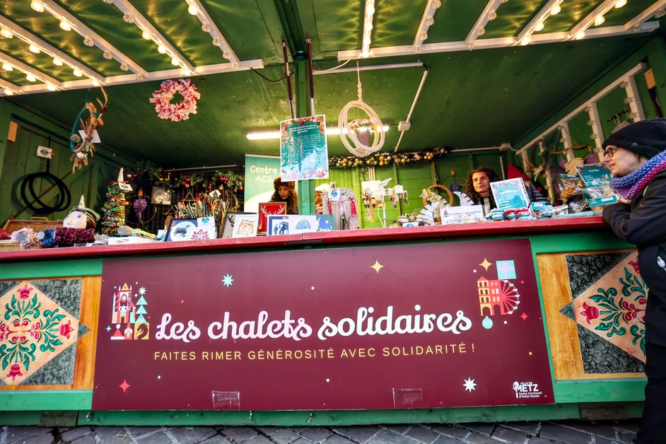 Sur le Marché de Noël de Metz, place de la République, jusqu’au 30 décembre, n’hésitez pas à effectuer des achats qui ont du sens et faites rimer générosité avec solidarité !