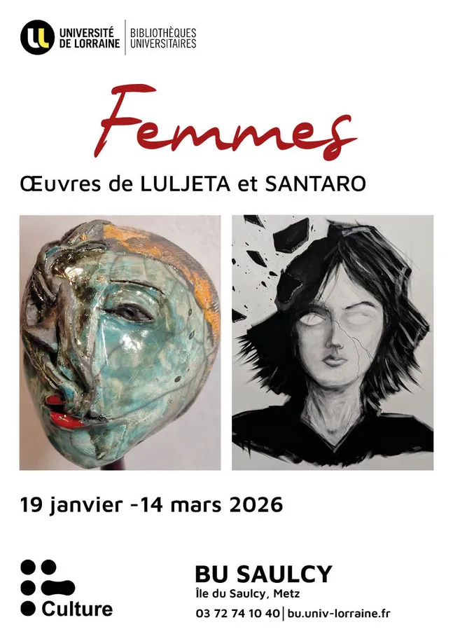 Cette exposition est née de la rencontre entre deux univers d’artistes autour du thème de la femme. Vous pourrez y découvrir les travaux en céramique Têtes de femmes et Femmes en terre raku de l’artiste Luljeta, mêlés à la composition de dessins Éclat de l’artiste Santaro.