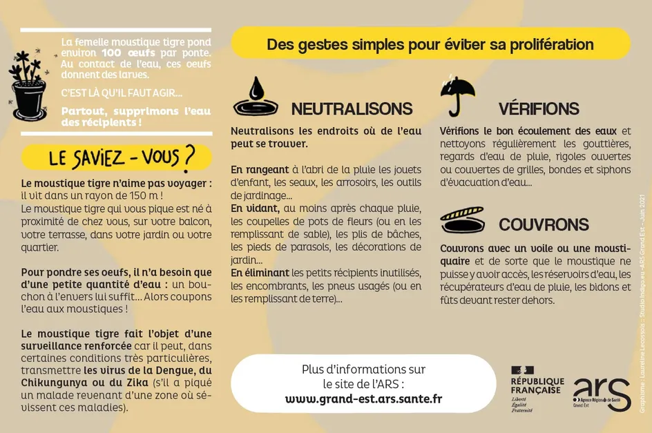Limiter la prolifération du moustique tigre , c’est l’affaire de tous ! L'ARS compte sur les signalements citoyens pour suivre l'évolution de la colonisation de ce moustique.