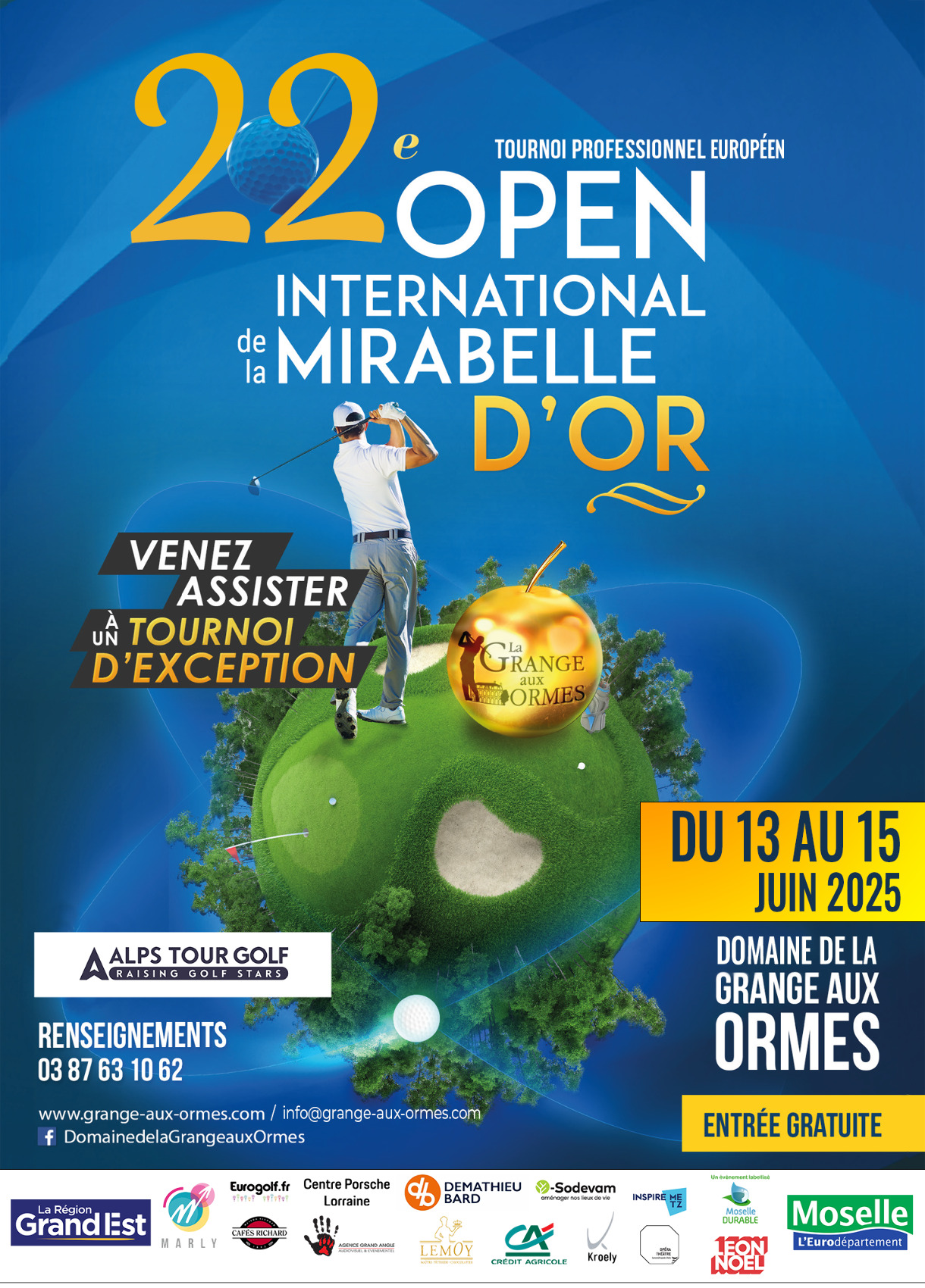 Plus d'informationsLe Domaine de la Grange aux Ormes accueille pour la 22ème année consécutive l’un des temps forts du circuit de l'Alps Tour : l'Open International de la Mirabelle d'Or !
