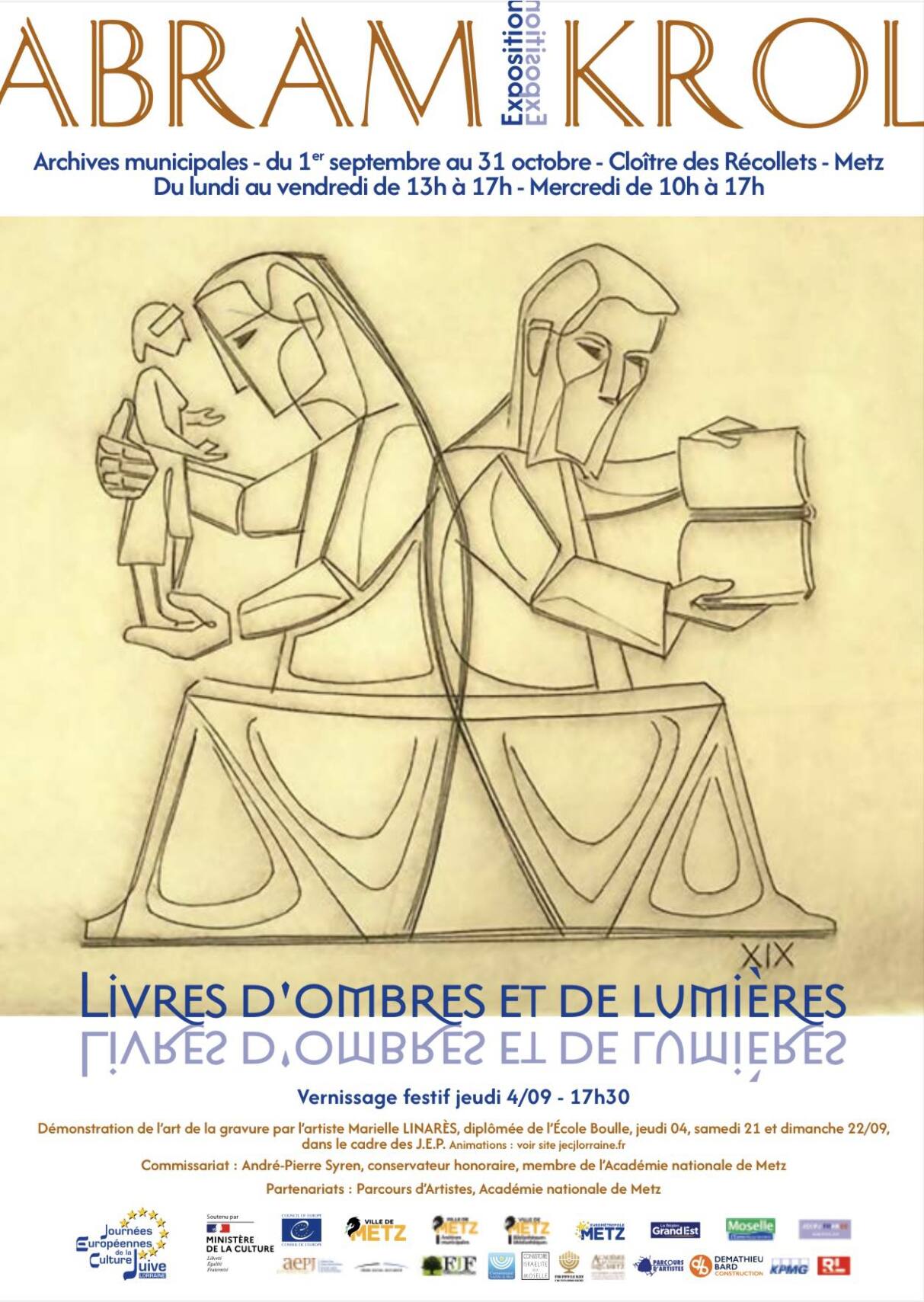 - Conférence Abram Krol, laboureur du sens, par André-Pierre Syren, Commissaire de l’exposition, secondé par Désirée Mayer, Présidente JECJ-Lorraine, aux Archives Municipales (date/heure bientôt sur le site de l’association : jecjlorraine.fr)