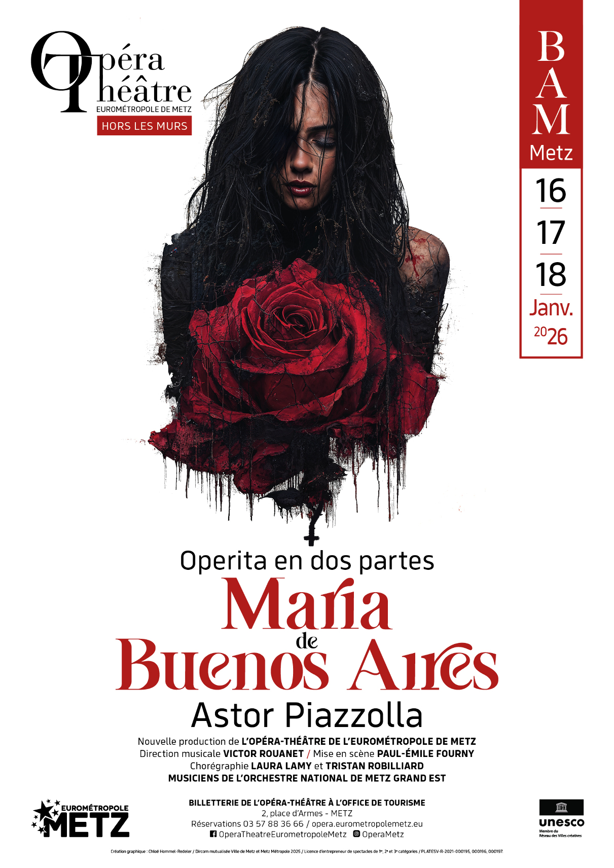 Maria, ouvrière dans une usine des faubourgs de Buenos Aires, devient une chanteuse à succès dans les cabarets de la ville. Créature de la nuit, elle mène une vie marginale et se livre avec ivresse à la danse et aux hommes. Elle meurt, tué par le bandonéon, avant que son Ombre ne revienne errer dans les rues. Nous assistons ensuite à la résurrection de Maria, donnant naissance à un enfant, symbolisant ainsi la renaissance du tango. Unique opéra d'Astor Piazzolla, cette oeuvre très populaire mêle tango, jazz, musique classique, chant, théâtre et danse.