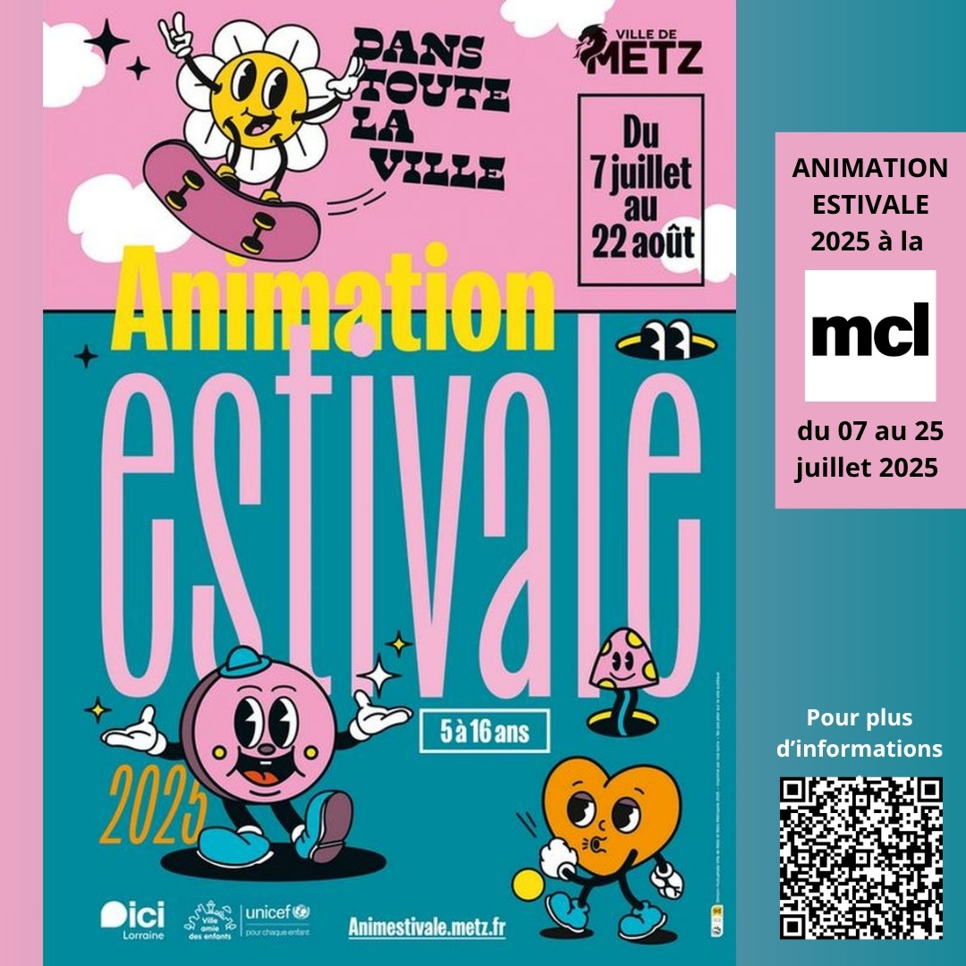 Le programme des activités, les modalités d'inscription, les formalités administratives, et réservations des activités, tous les liens utiles se trouvent sur notre site : https://mclmetz.fr/events/animation-estivale-2025-a-la-mcl/