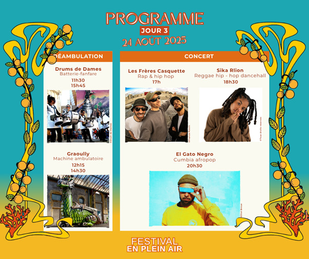 De 11h à 22h : Détente à la Guinguette Mirabelle – restauration locale et animations familiales. Marché des saveurs & des arts – dernière chance pour faire le plein de produits locaux et de belles trouvailles artisanales