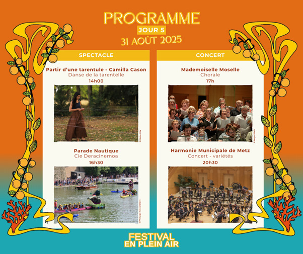 - 18h – L’Harmonie Municipale de Metz en concert “Rock Symphonique” : Un grand orchestre, des guitares et des chœurs pour un hommage spectaculaire au Alan Parsons Project - sur la grande scène