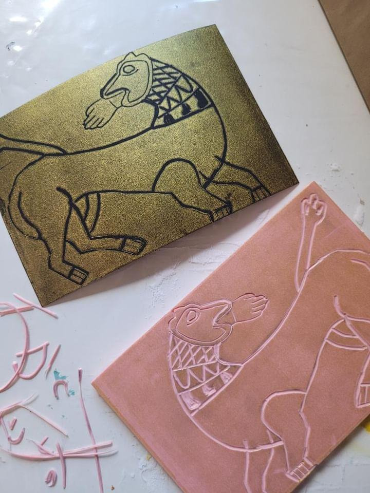 Après une visite ludique en famille, les motifs mystérieux du Moyen Âge n'auront plus de secret pour vous ! Inventez votre ornement inspiré des oeuvres et gravez-le sur une plaque de linogravure, à défaut de le graver dans le marbre.