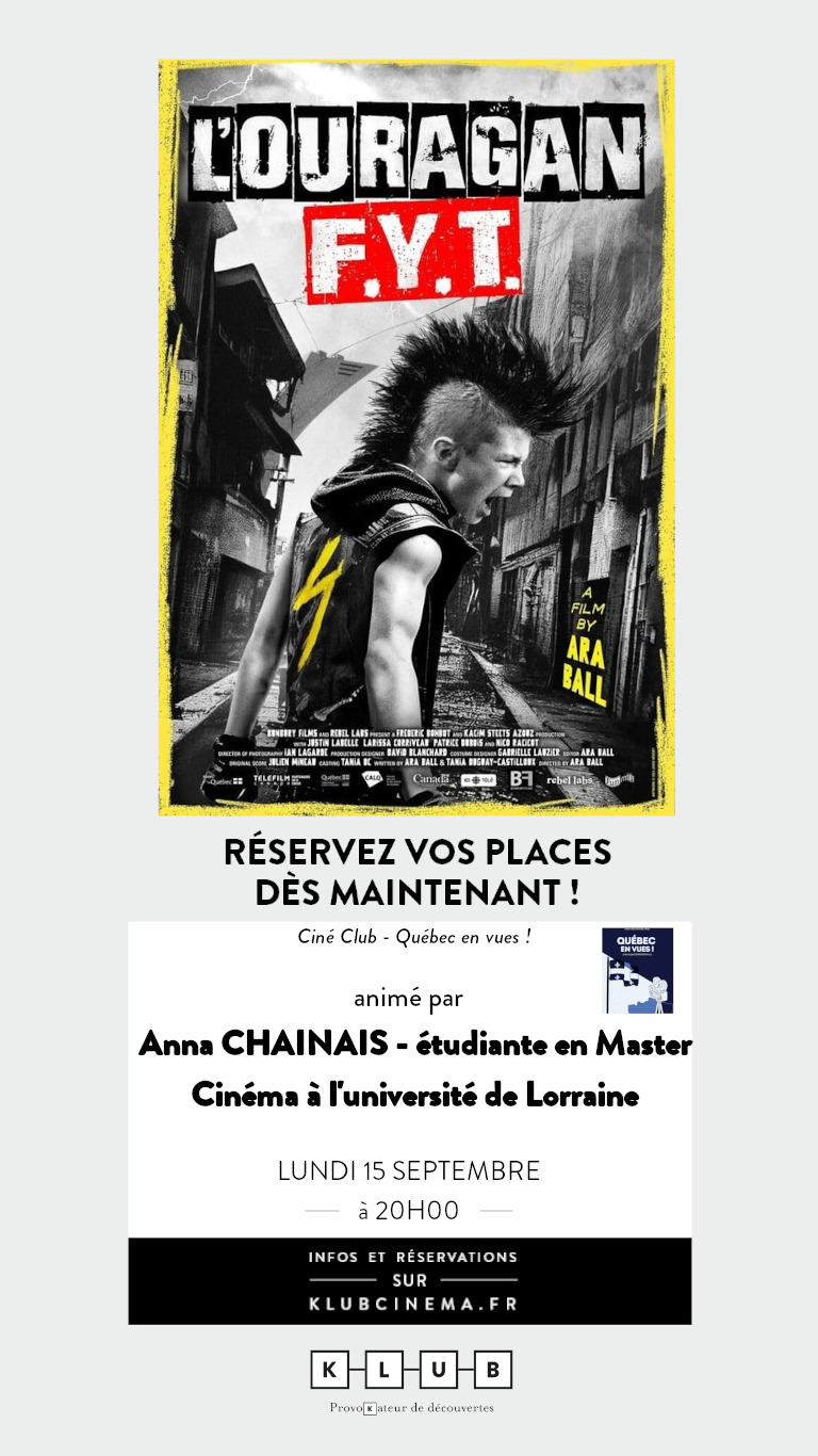 Le premier film sera "L'Ouragan F.Y.T." de Ara Ball.