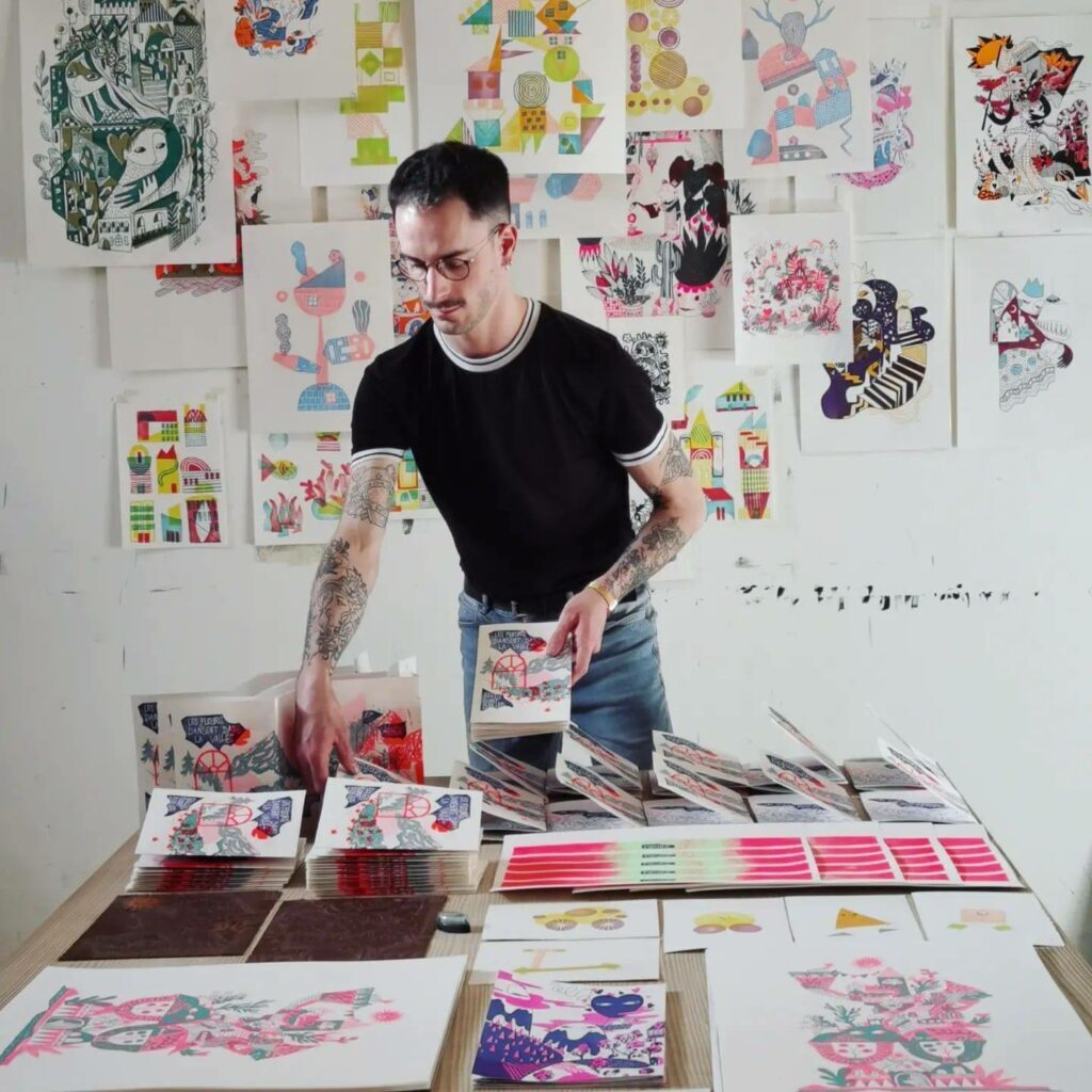 Dans le cadre de son voyage artistique entre Verviers, Metz et Völklinger Hütte, l’artiste belge Jo Delannoy fera étape à Metz pour une semaine de résidence au Centre socio-culturel de Borny entre le 13 et le 18 octobre 2025. Il réalisera des illustrations de bâtiments emblématiques de Metz. Son défi : réaliser trois séries d’affiches avec des techniques variées de tampographie, linogravure, … sur les villes traversées pendant son voyage.