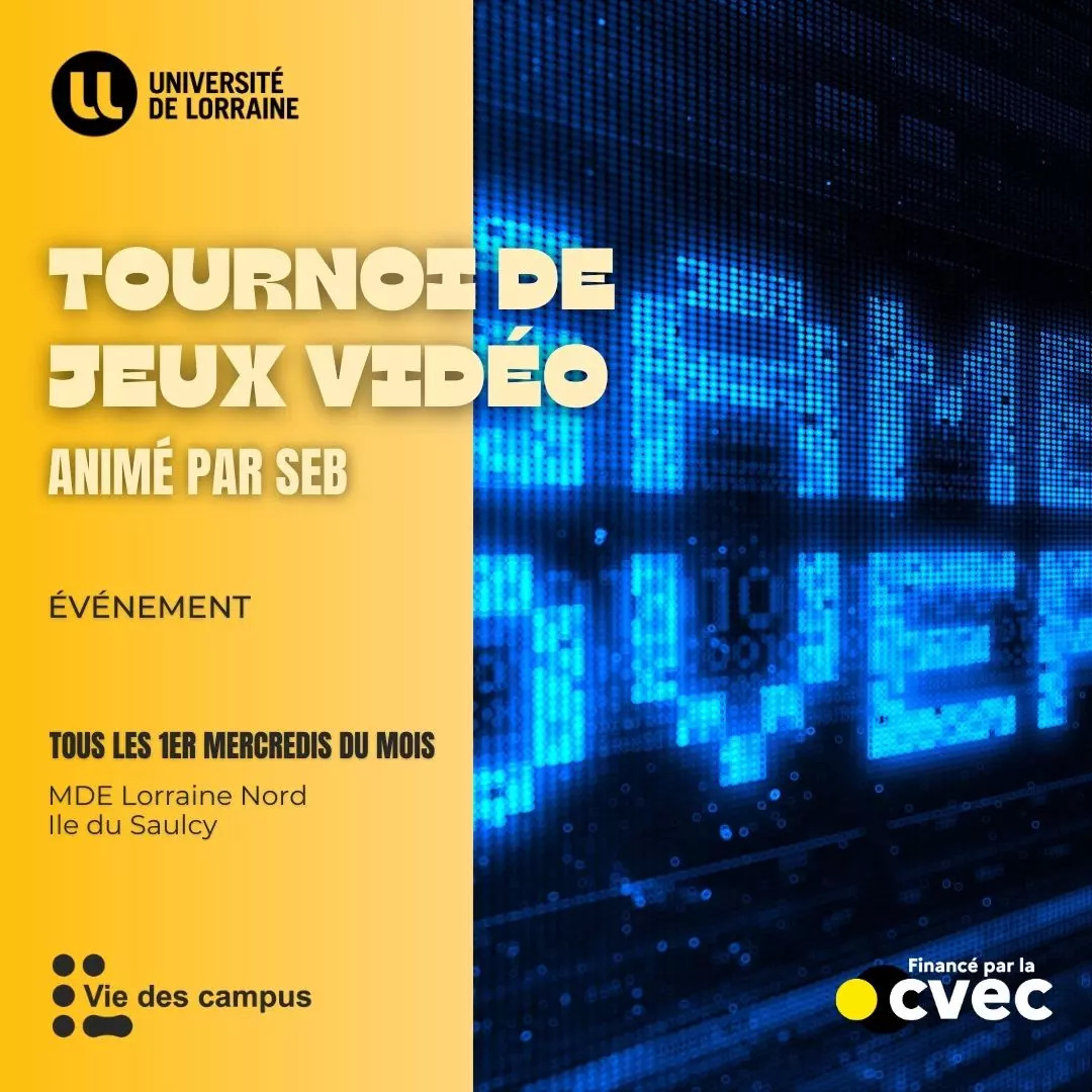 Tournoi de jeux vidéo – Tous les 1ers mercredis du mois ! (Mario Kart ou Super Smash Bros)La MDE Lorraine Nord organise un tournoi de jeux vidéo chaque 1er mercredi du mois !Viens défier les autres joueurs dans une ambiance fun et conviviale, et tente de remporter les nombreux lots à gagner !Que tu sois novice ou gamer confirmé, viens tenter ta chance !