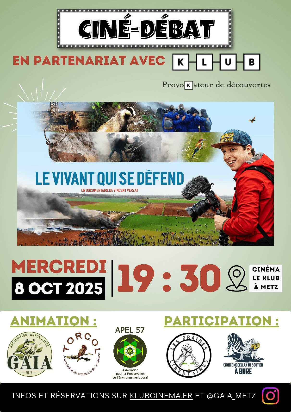 Tarif de groupe Gaia en pré-réservation (https://www.helloasso.com/associations/gaia-metz/evenements/cine-debat-le-vivant-qui-se-defend) :