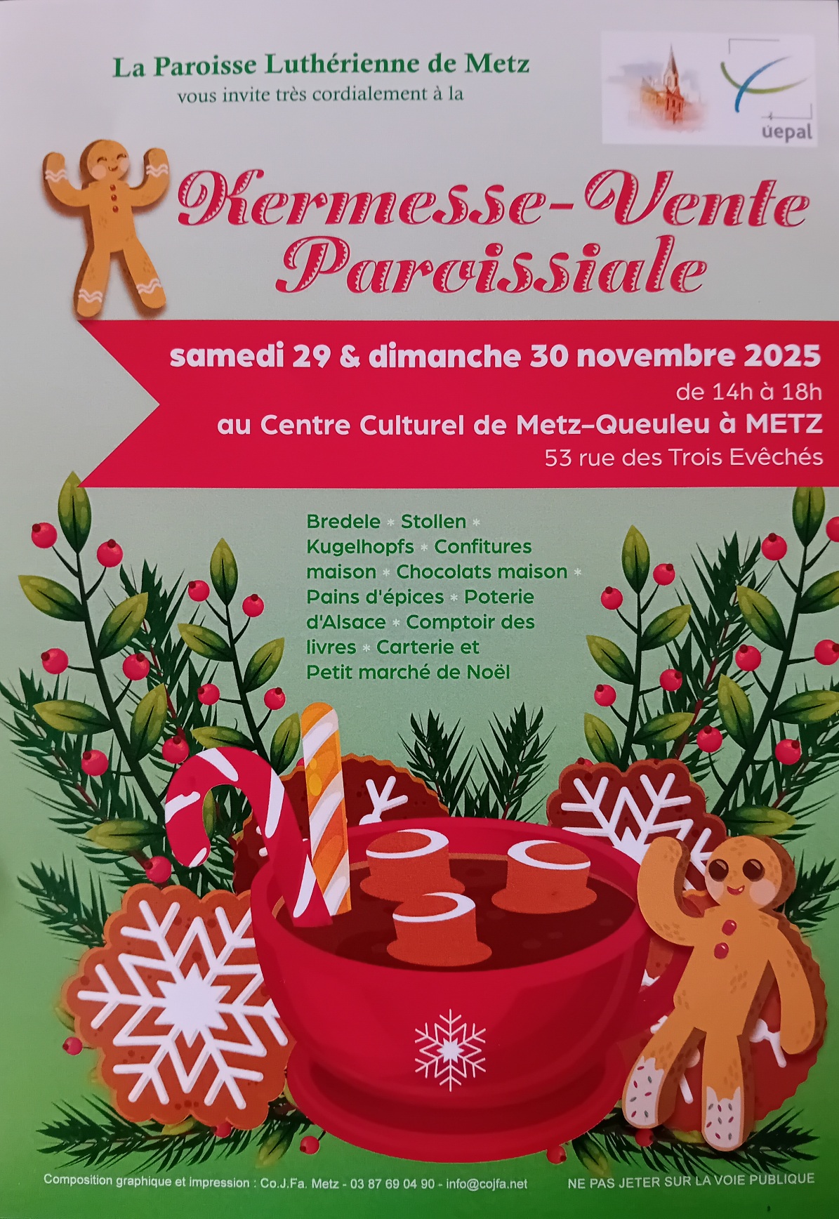 Paroisse luthérienne de MetzLa Paroisse Luthérienne de Metz organise sa Kermesse-Vente de Noël.