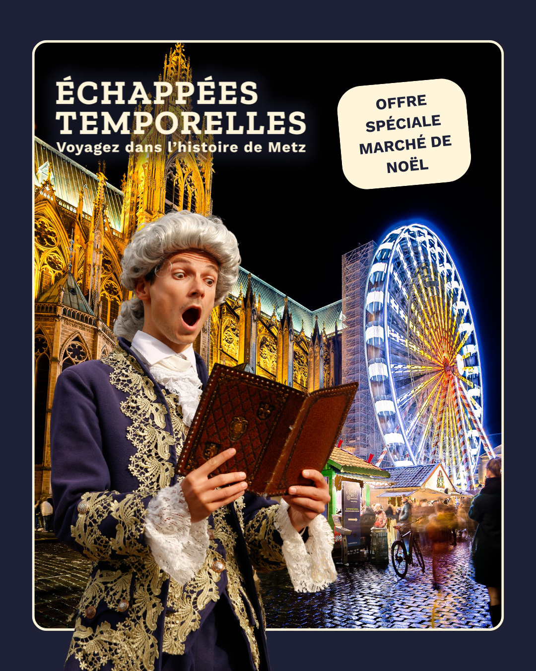 Revivez avec lui ces moments comme si vous y étiez ! Une expérience hors du temps, instructive et pleine d'humour, pour redécouvrir Metz et ses marchés de Noël autrement. Idéal pour une sortie en famille ou entre amis.