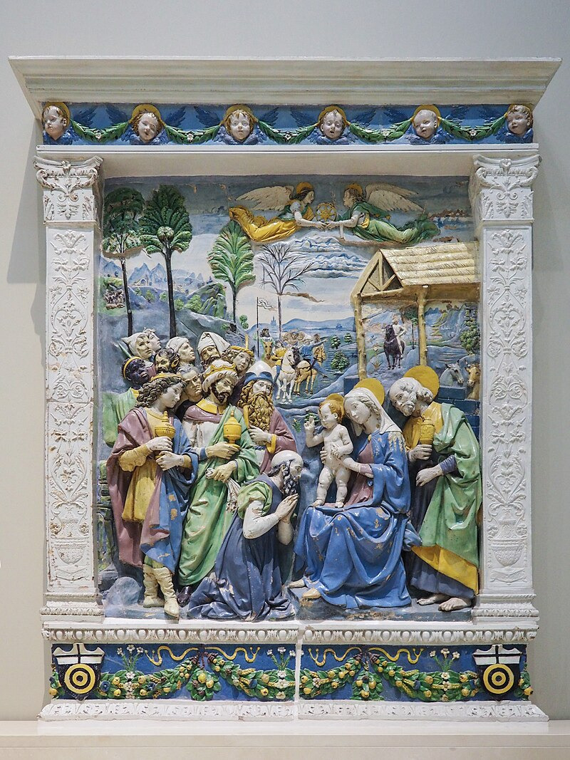 Image : Andrea della Robbia, L'Adoration des Mages, 1510 ; terre cuite vernissée ; 2,21 x 1,84 m ; Londres, Victoria and Albert Museum.