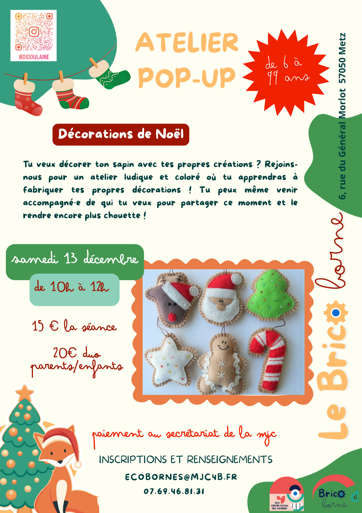 Tu veux décorer ton sapin avec tes propres créations ? Rejoins-nous pour un atelier ludique et coloré où tu apprendras à fabriquer tes propres décorations ! Tu peux même venir accompagné(e) de qui tu veux pour partager ce moment et le rendre encore plus chouette !