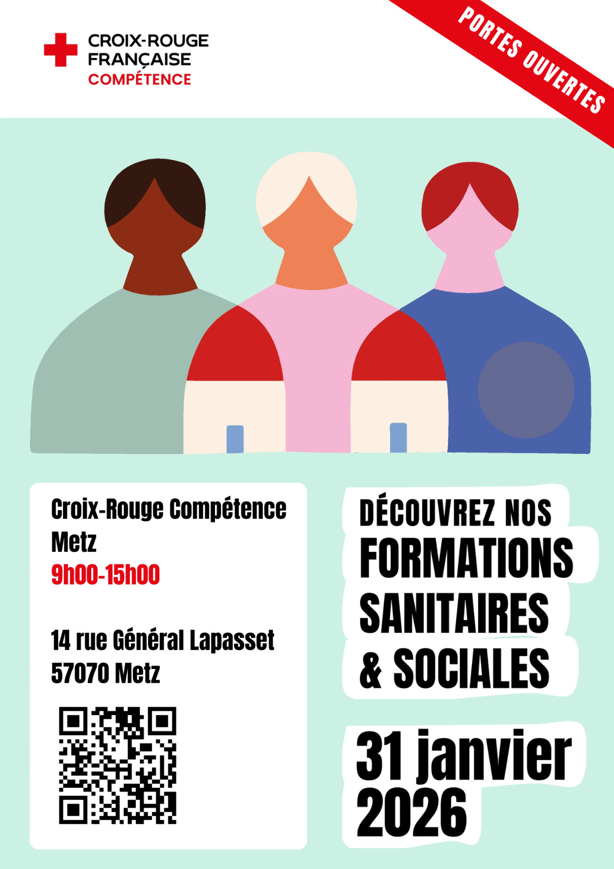 InscriptionLe site de formation Croix-Rouge Compétence de Metz ouvre ses portes samedi 31 janvier 2026.