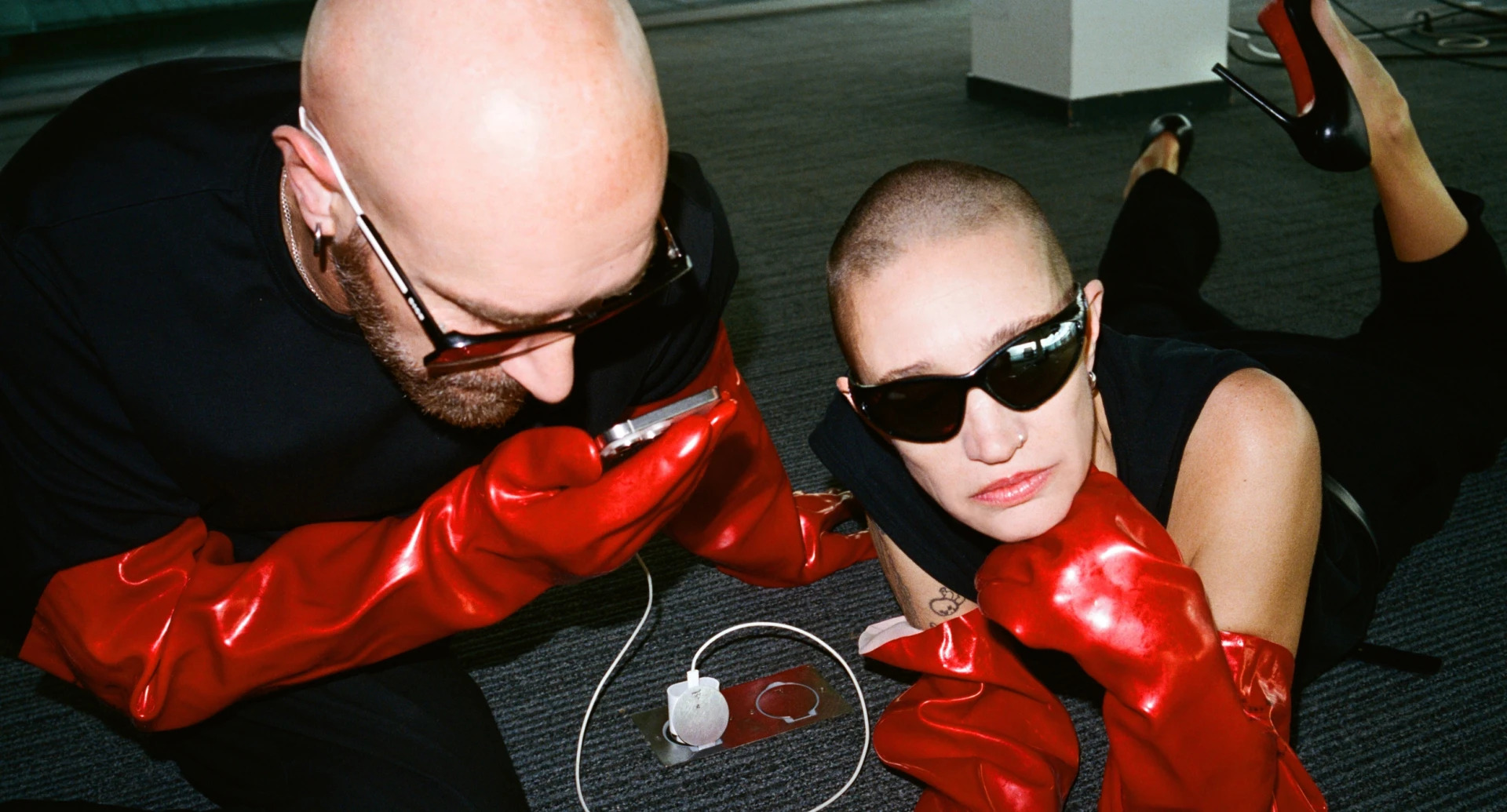 KOMPROMAT, c’est l’alliance de Vitalic et Rebeka Warrior (Sexy Sushi, Mansfield.TYA). Leur premier album Traum und Existenz, sorti en 2019 sur Clivage Music (le label de Vitalic), a posé les bases d’un univers sombre et percutant. En janvier 2025, ils reviennent avec PLAYING / PRAYING sur Warriorecords, label fondé par Rebeka Warrior. Ce nouveau disque explore des thèmes comme la prière (païenne ou non), les rites funéraires, les passages entre différents mondes, mais aussi les plaisirs de la chair, la danse, et l’extase – tel une invocation divine à travers la musique. Les genres se mélangent : EBM, Cold Wave, New Wave et techno radicale. Le duo s’amuse à brouiller les frontières. Là où l’allemand accompagnait le premier album, cette fois c’est l’anglais qui porte leurs nouvelles histoires.
