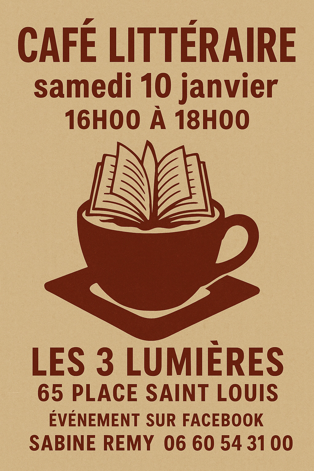 Evénement FacebookBienvenue au Café Littéraire – Une parenthèse enchantée autour des mots et des rires.