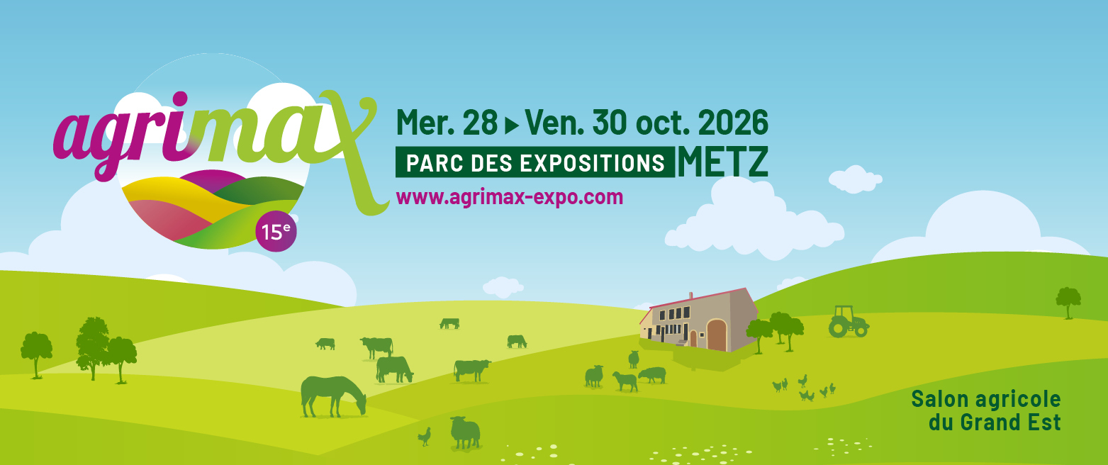 Au cœur de cette terre de polyculture et d’élevage, le Salon AGRIMAX, d’envergure nationale et transfrontalière, se tiendra durant 3 jours, du mercredi 28 au vendredi 30 octobre 2026 à Metz.