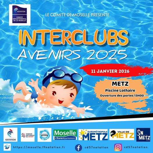 Ouverture des portes à 13hLa compétition Interclubs Avenirs 2025 se déroulera le dimanche 11 janvier 2026 à la Piscine Lothaire.