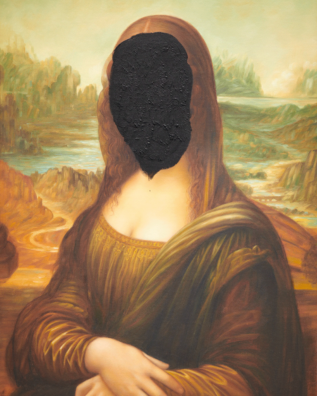Claire Fontaine détourne la copie pour en faire un outil critique. À partir d’une reproduction fidèle de La Joconde commandée à un copiste professionnel, l’artiste recouvre le visage de Lisa Gherardini d’un noir profond, absorbant toute lumière et toute lisibilité. Ce geste radical interroge le statut de l’image à l’ère de la saturation visuelle, entre culte médiatique et effacement symbolique. Fulvia Carnevale, membre du collectif d'artistes Claire Fontaine avec James Thornhill, propose lors de cette conférence de livrer ses réflexions sur la copie.