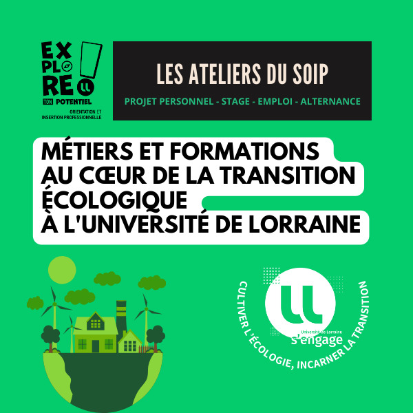 La mission Transition écologique (TE) et le Service d’orientation et d’insertion professionnelle (SOIP) de l’Université de Lorraine organisent un webinaire sur le thème central de la transition écologique qui vise à :