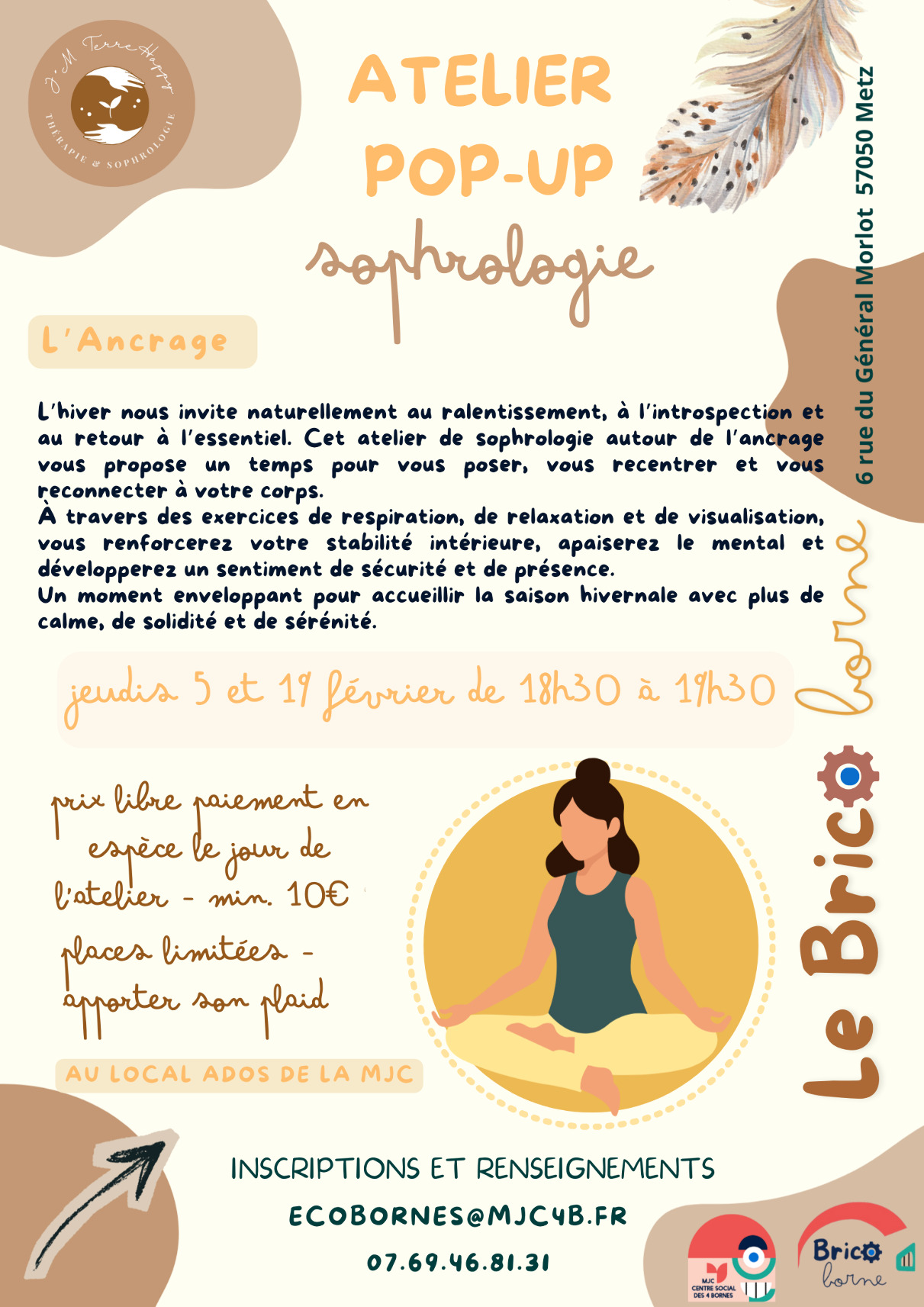 L’hiver nous invite naturellement au ralentissement, à l’introspection et au retour à l’essentiel. Cet atelier de sophrologie autour de l’ancrage vous propose un temps pour vous poser, vous recentrer et vous reconnecter à votre corps.