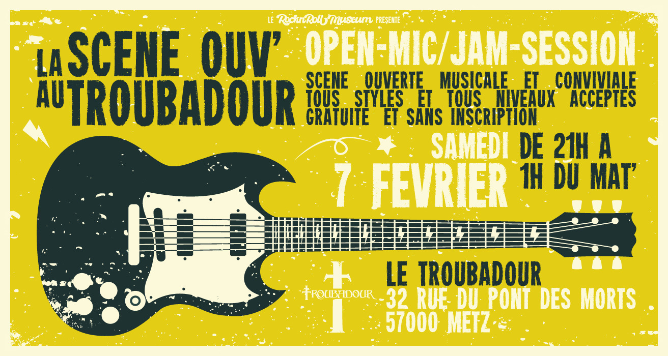 Vous êtes musicien·ne·s et vous cherchez un endroit où vous produire et rencontrer d'autres musicien(ne)s ? Ou alors vous aimez découvrir des artistes locaux ? Venez à la Scène Ouv' au Troubadour le 7 février à partir de 21h00 à Metz !