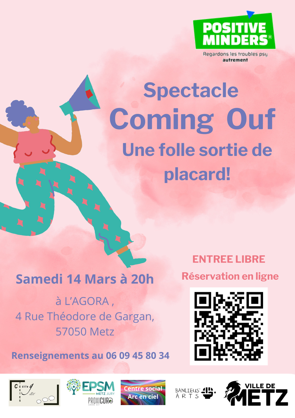 Plus d'informationsUne femme se trouve dans une pièce exigüe, un bureau, et raconte comment les patients d'un HP doivent et peuvent faire leur Coming ouf : la révélation publique et au grand jour de leur pathologie psychiatrique sur un ton humoristique.