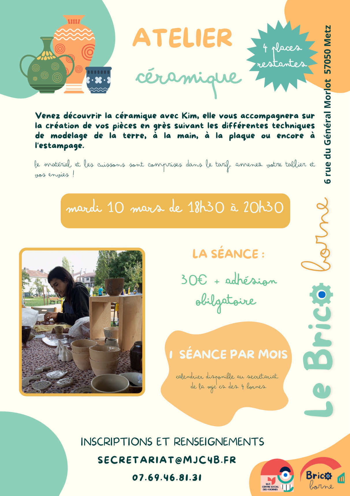 Paiement et inscription au secrétariat de la MJC CS DES 4 Bornes.Places limitées.