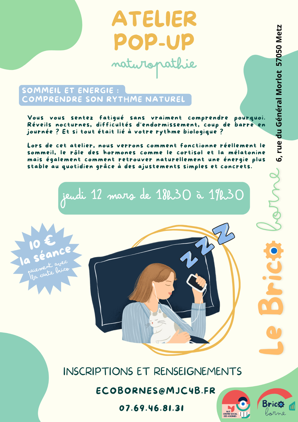 Lors de cet atelier, nous verrons comment fonctionne réellement le sommeil, le rôle des hormones comme le cortisol et la mélatonine mais également comment retrouver naturellement une énergie plus stable au quotidien grâce à des ajustements simples et concrets.