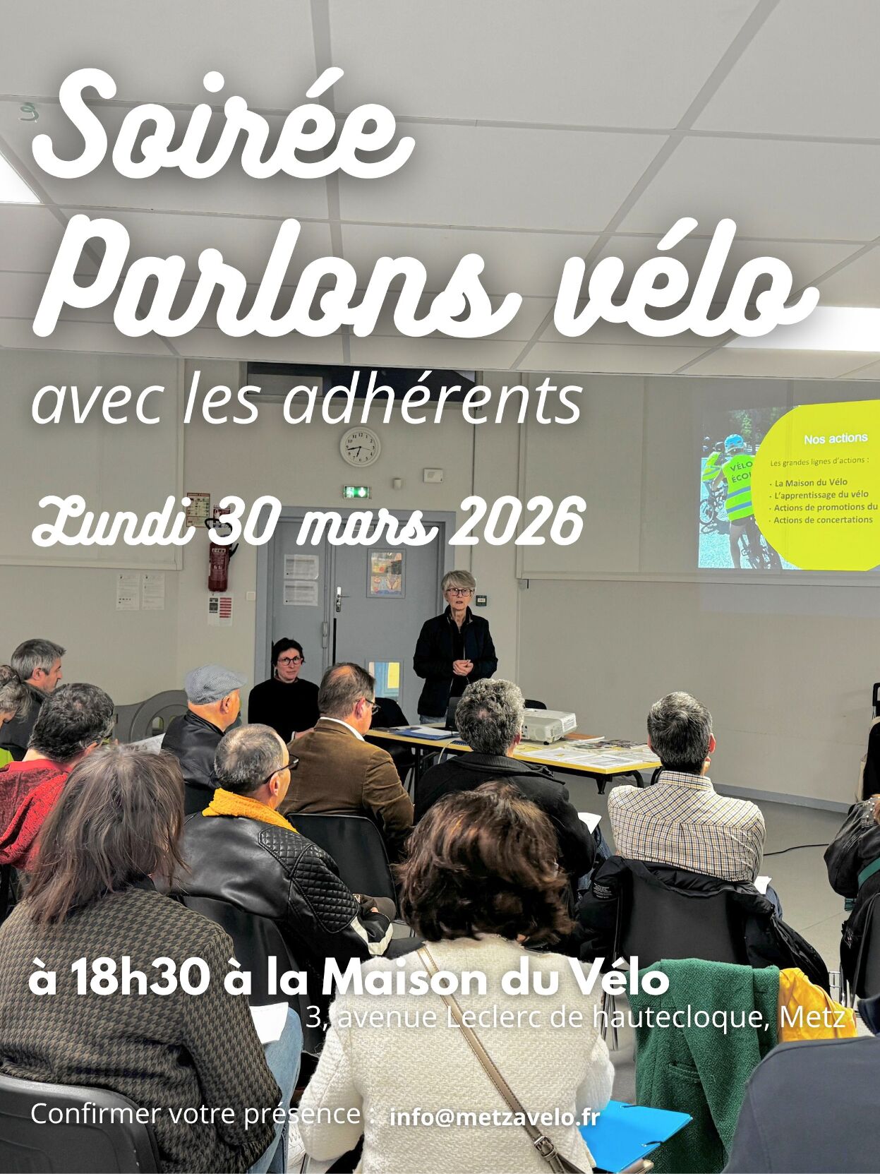 Cette soirée sera l’occasion de partager vos pratiques, vos idées et vos retours d’expérience : déplacements du quotidien, aménagements cyclables, difficultés rencontrées ou solutions trouvées. Tous les points de vue sont les bienvenus.
