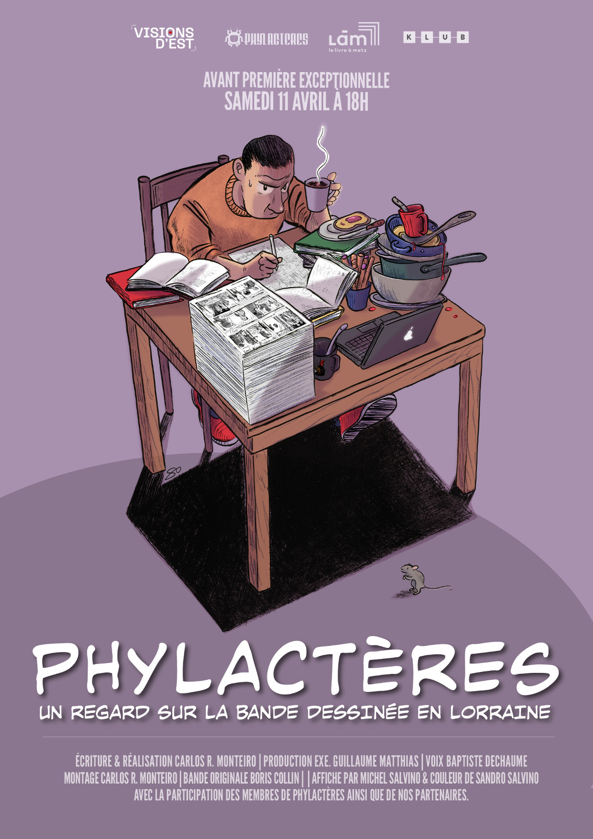 Synopsis : Depuis vingt ans, en Lorraine, le collectif Phylactères édite de la bande dessinée indépendante et solidaire. Travailleurs de l'ombre, ses membres jonglent entre carrières professionnelles et passion pour le 9ème Art. Pour célébrer cet anniversaire, ils se lancent un défi en 2023 : retourner au Festival d'Angoulême. Mais entre logistique précaire et confrontation avec un milieu en crise, le voyage bouscule leurs certitudes. Le film dresse le portrait d'une “famille” qui, face au temps qui passe, doit se réinventer pour transmettre son éthique à une nouvelle génération