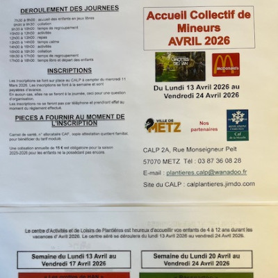 Du 13 au 24 avril 2026 de 7h30 à 18h