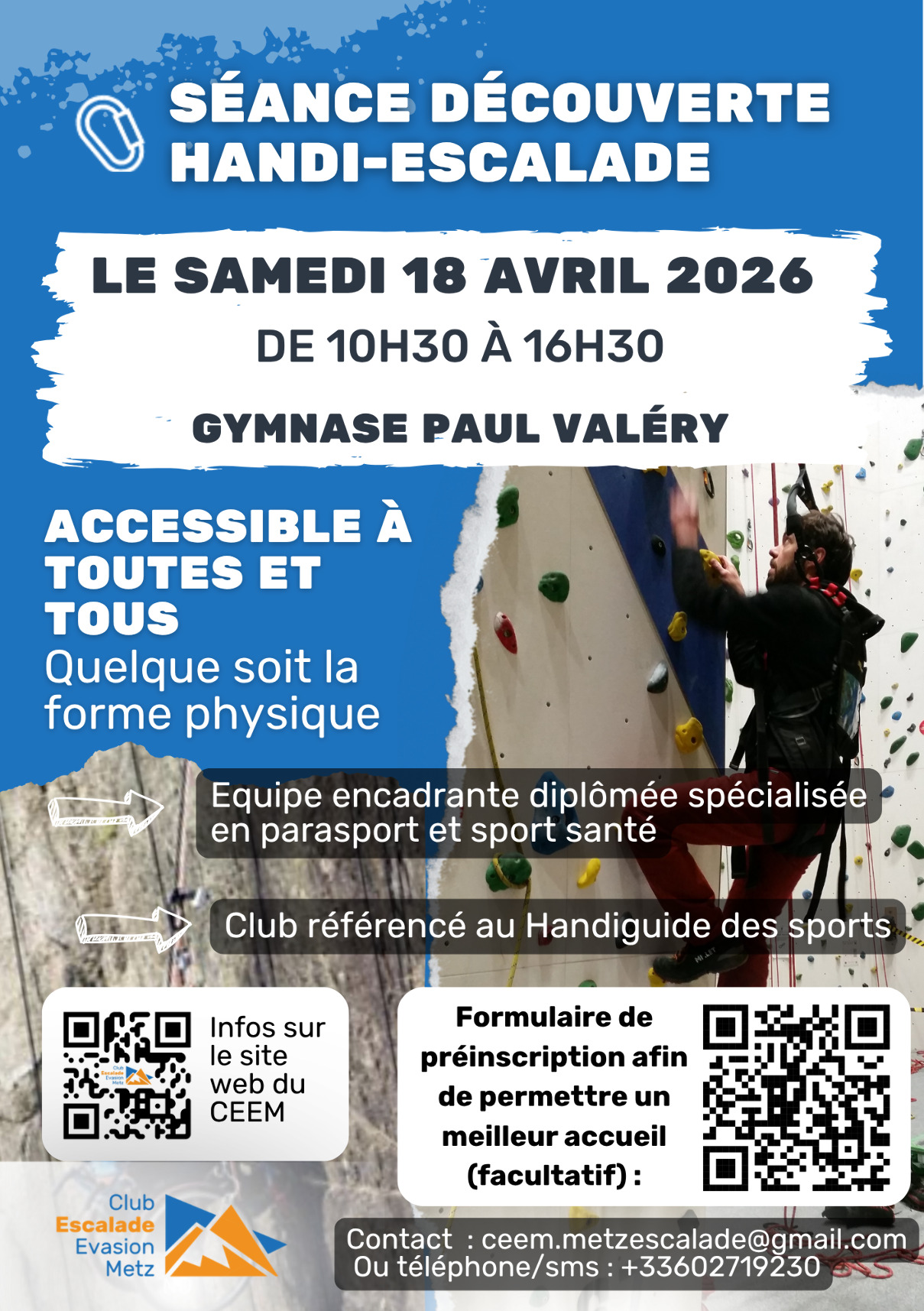 Club Escalade Evasion Metz (CEEM)Pour la 7e édition, la journée découverte handi'escalade revient au CEEM !