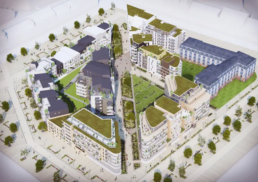 Un cœur de quartier pour Nouvelle Ville, avec environ 500 logements créés et une traversée piétonne.
