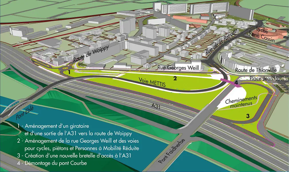 - aménagement d’un giratoire et d’une sortie de l’A31 vers la route de Woippy,