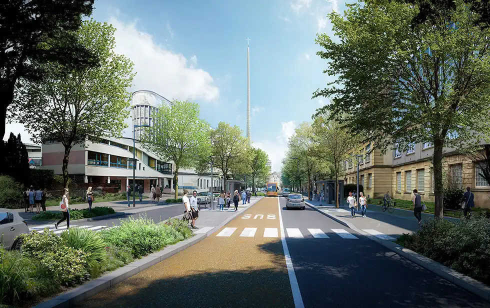 Le projet s’accompagnera d’un aménagement des espaces publics sur l’ensemble du trajet : élargissement de certains trottoirs, réseau cyclable, cheminements piétons améliorés et sécurisés. Les impacts sur les conditions de circulation des automobilistes resteront limités.