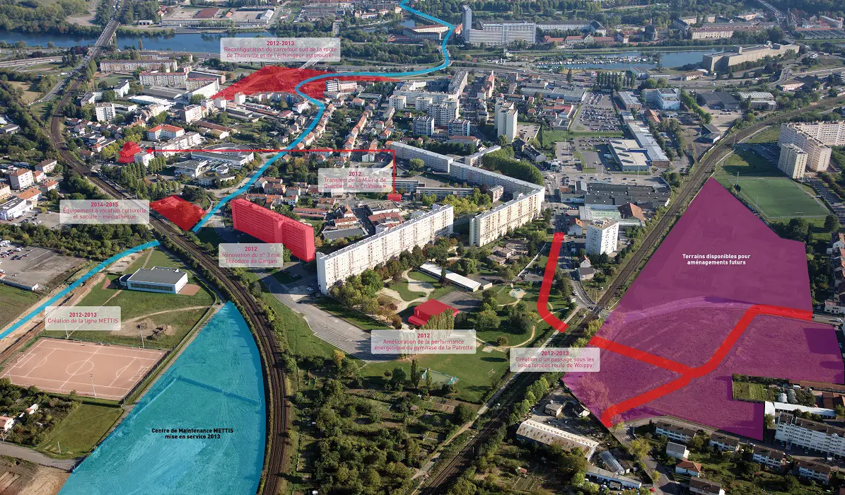 - Création de la Ligne A METTIS, avec la mise en place de 4 stations dans le quartier Metz Nord - Patrotte (mise en service octobre 2013),